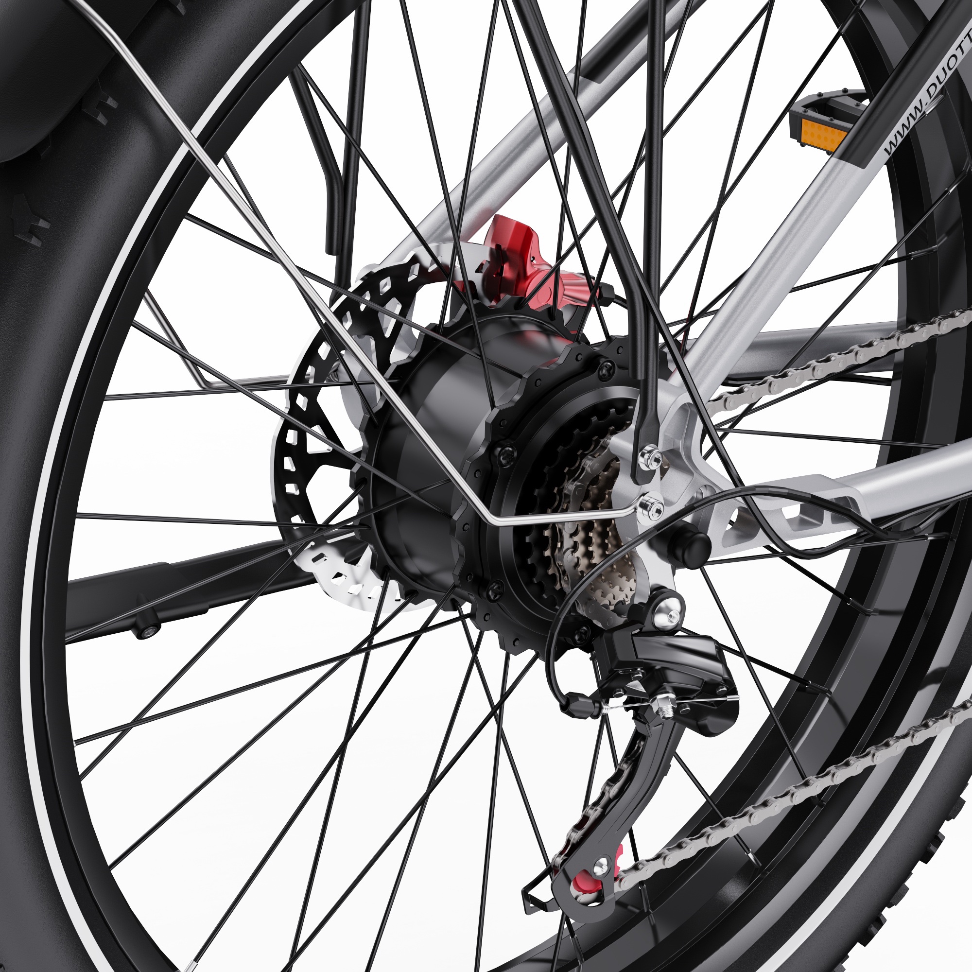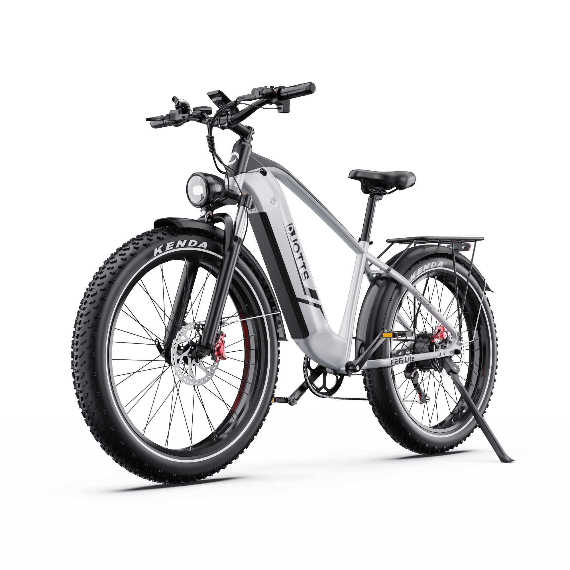 Duotts F26 Lite är en elmountainbike med fokus på kraft, stabilitet och lång räckvidd. Med 500W motor, 48V 18Ah-batteri och breda 26×4,0″ Kenda-däck tar den dig fram lika tryggt på asfaltsvägar som på grus, skogsstigar och vintervägar.