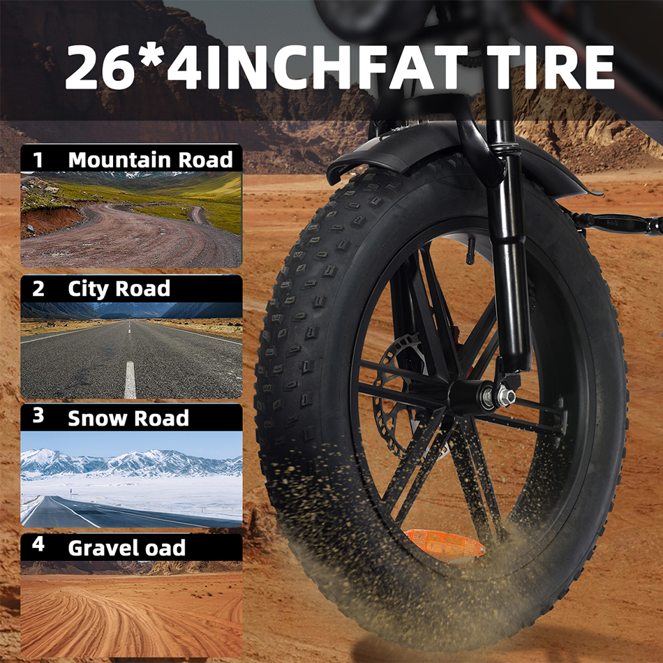 De breda, feta däcken ger ett överlägset grepp och stabilitet, både i stadsmiljö och på ojämna underlag som grusvägar, snö eller sand.
